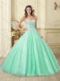 Classical Apple Green Tulle Perfect Quinceanera Dress with Beading