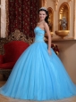 Home >  Quinceanera Dresses >  15 Quinceanera Dresses > Classical Aqua Blue Quinceanera Dress Sweetheart Tulle and Taffeta Beading Ball Gown
