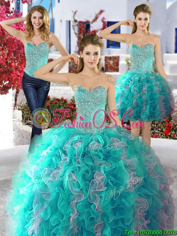 Classical Beaded and Ruffled Big Puffy Detachable Quinceanera Dresses in Organza