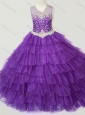 Home >  Special Occasion Dresses >  New Style Little Girl Pageant Dresses > Classical Beaded and Ruffled Layers Little Girl Pageant Dress in Purple