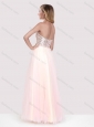 Classical Beaded Bodice Empire Baby Pink Long Prom Dress in Tulle