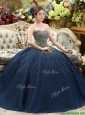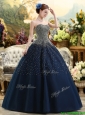 Classical Beaded Bodice Sweet 16 Dress in Navy Blue