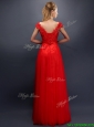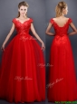 Classical Beaded V Neck Red Prom Dress with Cap Sleeves