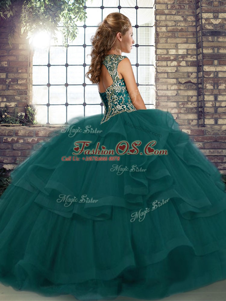 Classical Beading and Ruffles Quinceanera Gown Purple Lace Up Sleeveless Floor Length