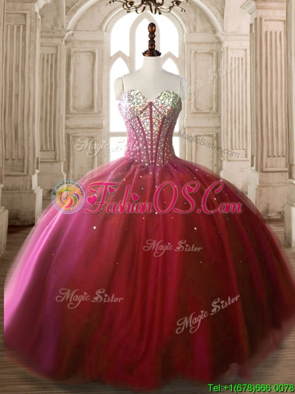 Classical Big Puffy Wine Red Quinceanera Dress with Beading