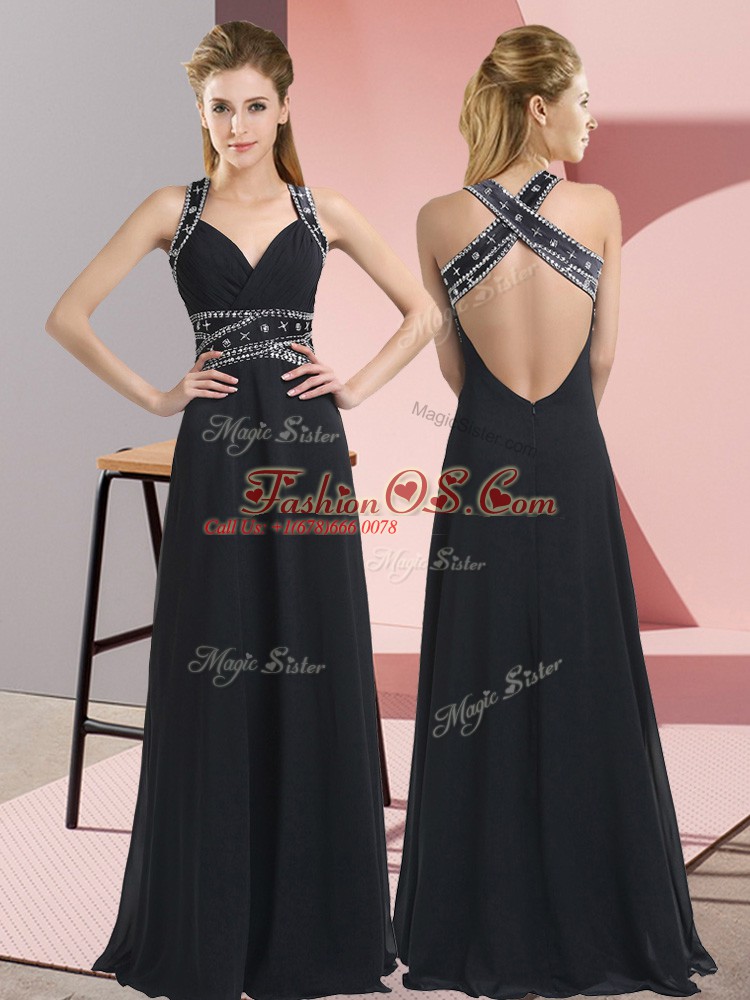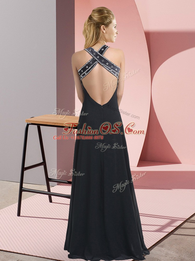 Classical Black Sleeveless Chiffon Backless Mother Of The Bride Dress for Prom and Party