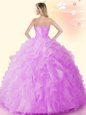 Classical Blue Lace Up Sweetheart Beading and Ruffles Vestidos de Quinceanera Organza Sleeveless
