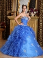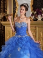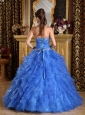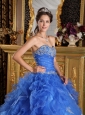 Classical Blue Quinceanera Dress Sweetheart Ruffles Organza Ball Gown