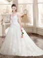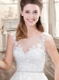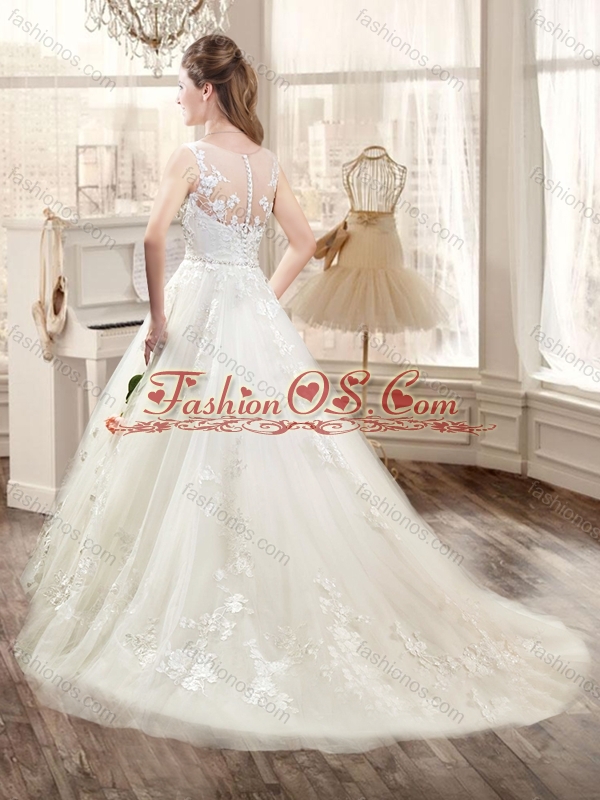 Classical Brush Train Wedding Dresses with Appliques and Belt
