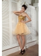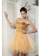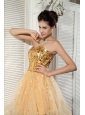 Classical Champagne A-line / Princess Cocktail Dress Sweetheart Organza Sequins Mini-length