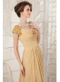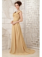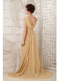Classical Champagne Empire V-neck Evening Dress Chiffon Beading Brush Train