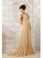 Home >  Evening Dresses > Classical Champagne Empire V-neck Evening Dress Chiffon Beading Brush Train