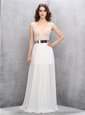 Home >  Prom Dresses >  Beautiful Prom Dresses > Classical Chiffon V-neck Sleeveless Zipper Beading and Belt in White