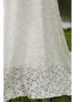Pure is the only word can explain this dress.This simple design lace wedding dress is highlighted with the sweetheart strapless bodice.You can see that the different print of the lace fabric between the bodice and the skirt.It shows your figure perfectly.The sweep train and the zipper up back finish the dress.You will be the most elegent bride when you wear this dress.