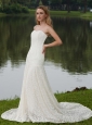 Home >  Wedding Dresses >  Affordable Wedding Dresses > Classical Column / Sheath Strapless Court Train Lace Wedding Dress