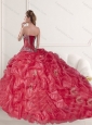 Classical Coral Red Dress for Quinceanera Dress with Appliques and Ruffled Layers