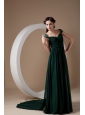 Home >  Evening Dresses > Classical Dark Green Empire Evening Dress Square Watteau Train Chiffon Beading