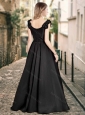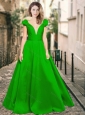 Classical Deep V Neckline Satin Prom Dress with Cap Sleeves