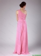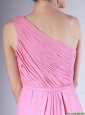 Classical Empire One Shoulder Rose Pink Prom Dresses with Ruching