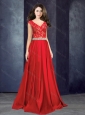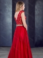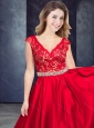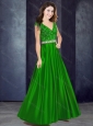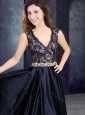 Classical Empire V Neck Beaded and Laced Prom Dress in Taffeta
