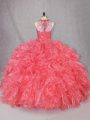 Classical Floor Length Ball Gowns Sleeveless Coral Red Quinceanera Gowns Zipper