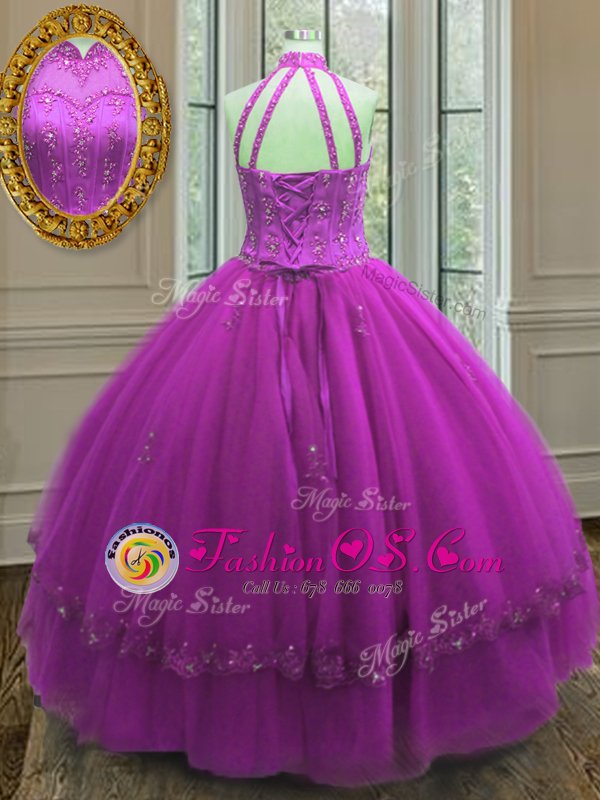 Home >  Quinceanera Dresses >  In Stock Quinceanera Dresses > Classical Floor Length Lace Up Quinceanera Gowns Fuchsia and In for Military Ball and Sweet 16 and Quinceanera with Beading and Appliques
