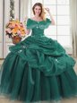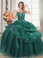 Home >  Quinceanera Dresses >  Perfect Quinceanera Dresses > Classical Floor Length Lace Up Sweet 16 Dress Dark Green and In for Military Ball and Sweet 16 and Quinceanera with Beading and Appliques and Pick Ups