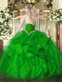Classical Fuchsia Ball Gowns Beading and Ruffles Quinceanera Gown Lace Up Organza Sleeveless Floor Length
