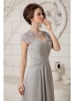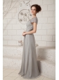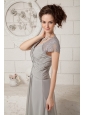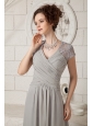 Classical Grey Column V-neck Prom Dress Chiffon Lace Floor-length