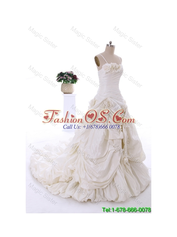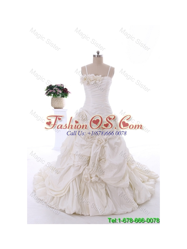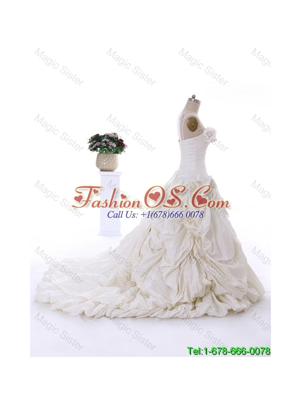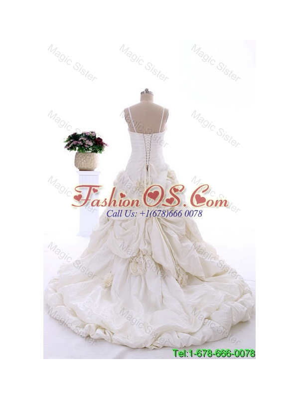 Classical Hand Made Flowers Court Train Wedding Dresses