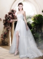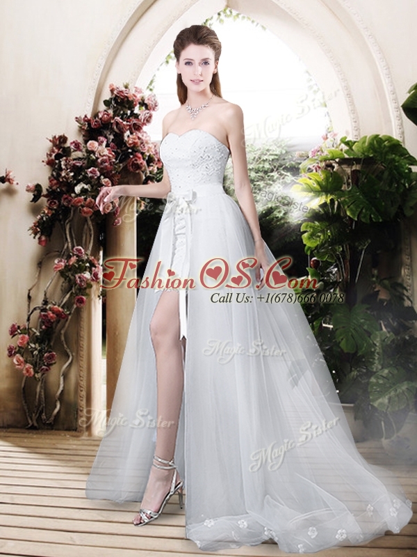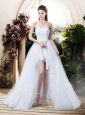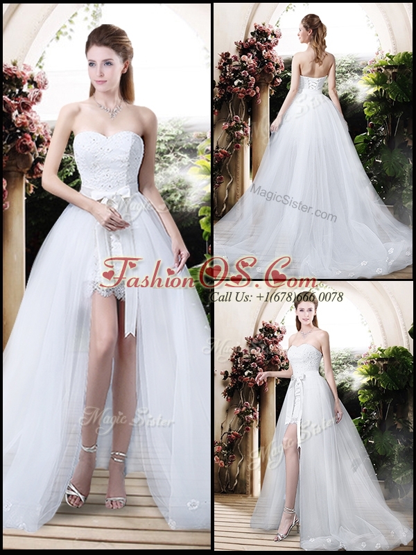 Home >  Wedding Dresses >  Romantic Wedding Dresses > Classical High Low Detachable Wedding Dresses with Appliques and Lace