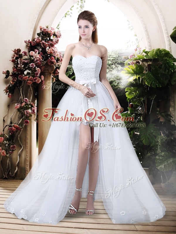 Classical High Low Detachable Wedding Dresses with Appliques and Lace