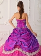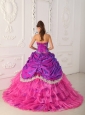 Classical Hot Pink Quinceanera Dress Strapless Organza and Taffeta Lace and Appliques Ball Gown