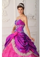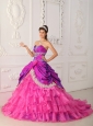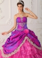 Home >  Quinceanera Dresses >  Fashionable Quinceanera Dresses > Classical Hot Pink Quinceanera Dress Strapless Organza and Taffeta Lace and Appliques Ball Gown