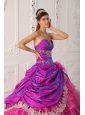This pretty quinceanera dress features a strapless neckline corset with a satin ruched waist embellished with appliques and a special bust design. The ball gown is adorned by the bubble slit fully hemed with lace on the front and layers of tulle flowing to the very bottom. A-line silhouette accented with gathering.