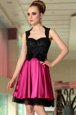 Home >  Prom Dresses >  Modest Prom Dresses > Classical Knee Length Side Zipper Prom Party Dress Pink And Black and In for Prom and Party with Beading