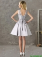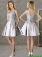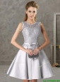 Classical Laced and Bowknot Scoop Bridesmaid Dresses in Silver