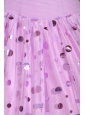 Strapless dresses are one of the sexier styles on the market today. They show just enough skin to be classy without being too revealing. This one features a strapless bodice with pretty beading suffuse the breast part. Many golden, shimmering paillette embellishments on the tulle top layer of the skirt adorn the dress throughout and catch the light in a lovely way. The dress sways beautifully across the floor when you move, as if you're floating on air. A lace up corset style closure in the back secures the dress in place.