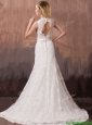 Home >  Wedding Dresses >  Romantic Wedding Dresses > Classical Mermind V Neck Lace and Sashes Wedding Dresses with Shade Back
