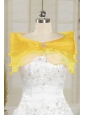 The dress does not include any accessories in the picture, such as wraps,jackets, gloves, veil, jewelry, etc.You may contact us to order the accessories separately.You could choose wraps for cold season and jacket for warm season.