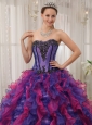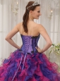 Classical Multi-colored Quinceanera Dress Sweetheart Organza Appliques Ball Gown