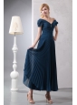 Classical Navy Blue Column V-neck Beading Mother Of The Bride Dress Ankle-length Chiffon