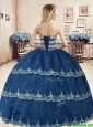 Classical Navy Blue Organza Sweet 16 Dress with Beading and Appliques