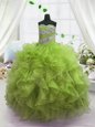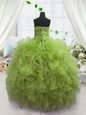 Home >  Special Occasion Dresses >  Little Girl Pageant Dresses > Classical Olive Green Lace Up Girls Pageant Dresses Beading and Ruffles Sleeveless Floor Length