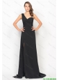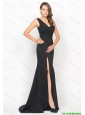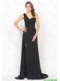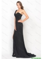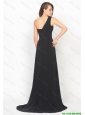 Classical One Shoulder Black Prom Dresses with Brush Train