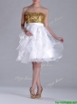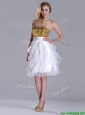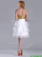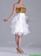 Home >  Prom Dresses >  Sexy Prom Dresses > Classical Organza Sequined and Ruffled Prom Dress in White and Gold
