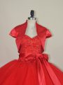 Home >  Quinceanera Dresses >  Clearance Quinceanera Dresses > Classical Red Sleeveless Floor Length Beading and Bowknot Lace Up Quinceanera Dresses
