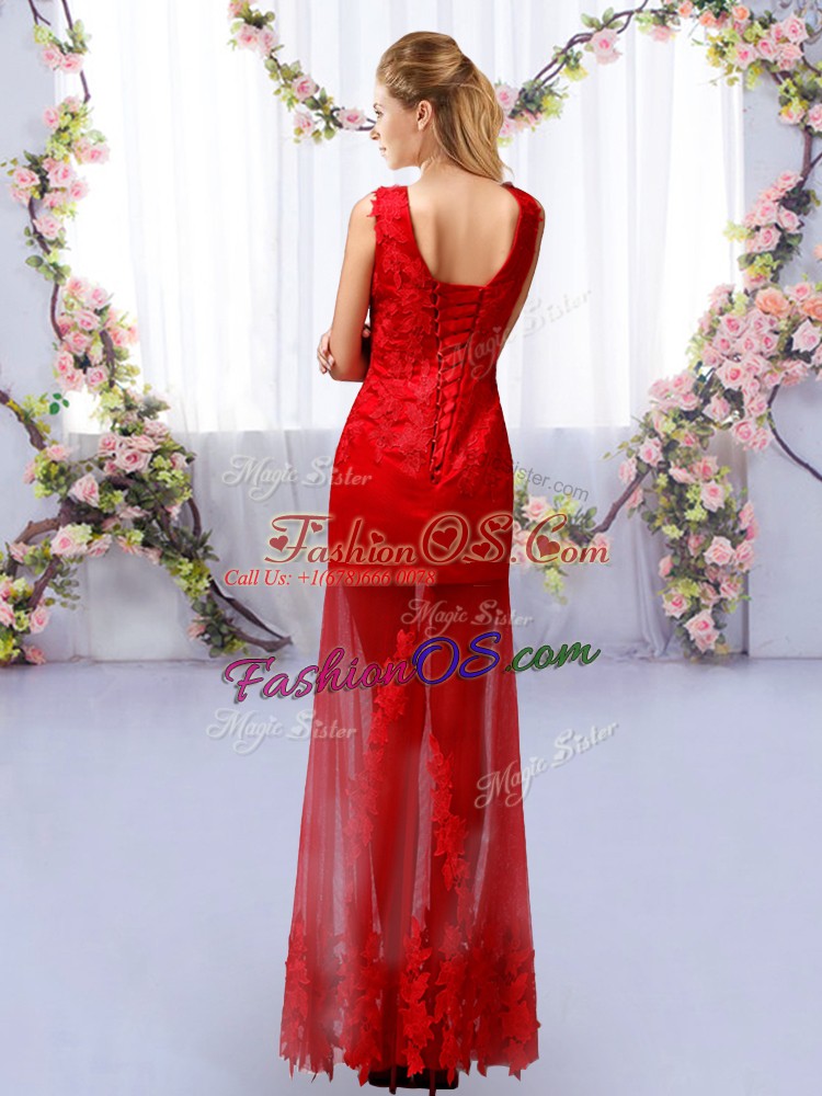 Classical Red V-neck Lace Up Lace Dama Dress for Quinceanera Sleeveless