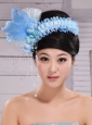 Classical Rhinestones and Feather Decorate On Tulle Baby Blue Headpieces For Party