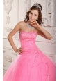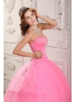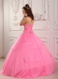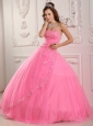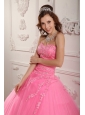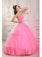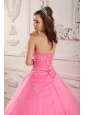 Classical Rose Pink Sweet 16 Dress Ball Gown Sweetheart Tulle Appliques
